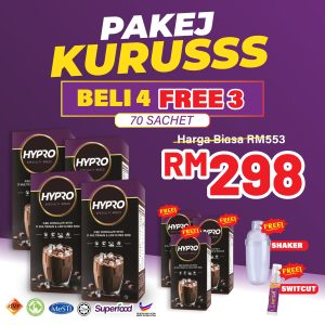 KETIGA : Anda bagi peluang untuk cuba HYPRO sekarang. Amalkan setiap hari, sampai anda dapat rasa sendiri penurunan berat badan secara sihat. Tiada lagi diet rosak sebab tak tahan lapar. Tiada tenaga. Tak bermaya. Produk selamat, berkesan, Lulus KKM dan diformulasi khas oleh Pakar Teknologi Makanan UiTM.