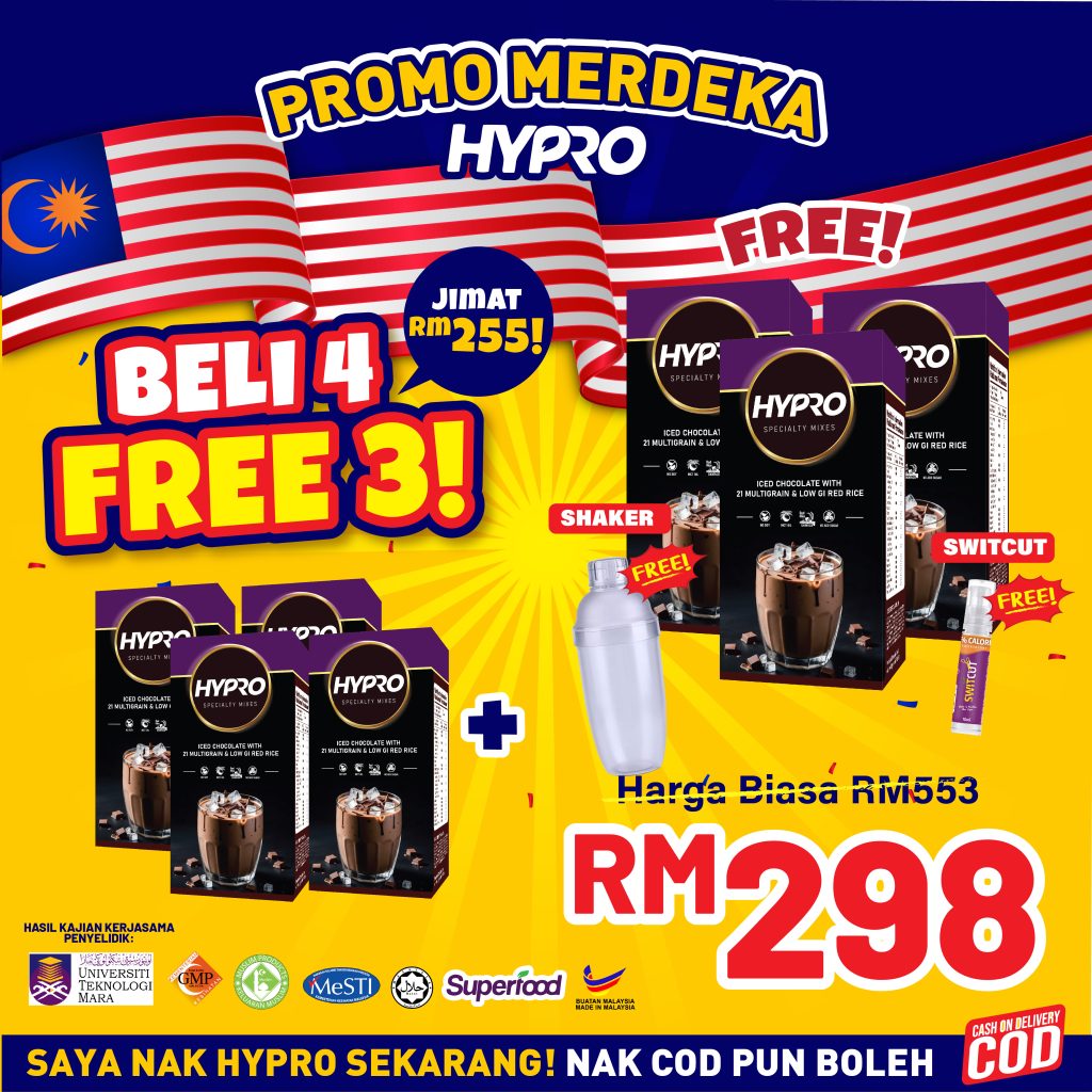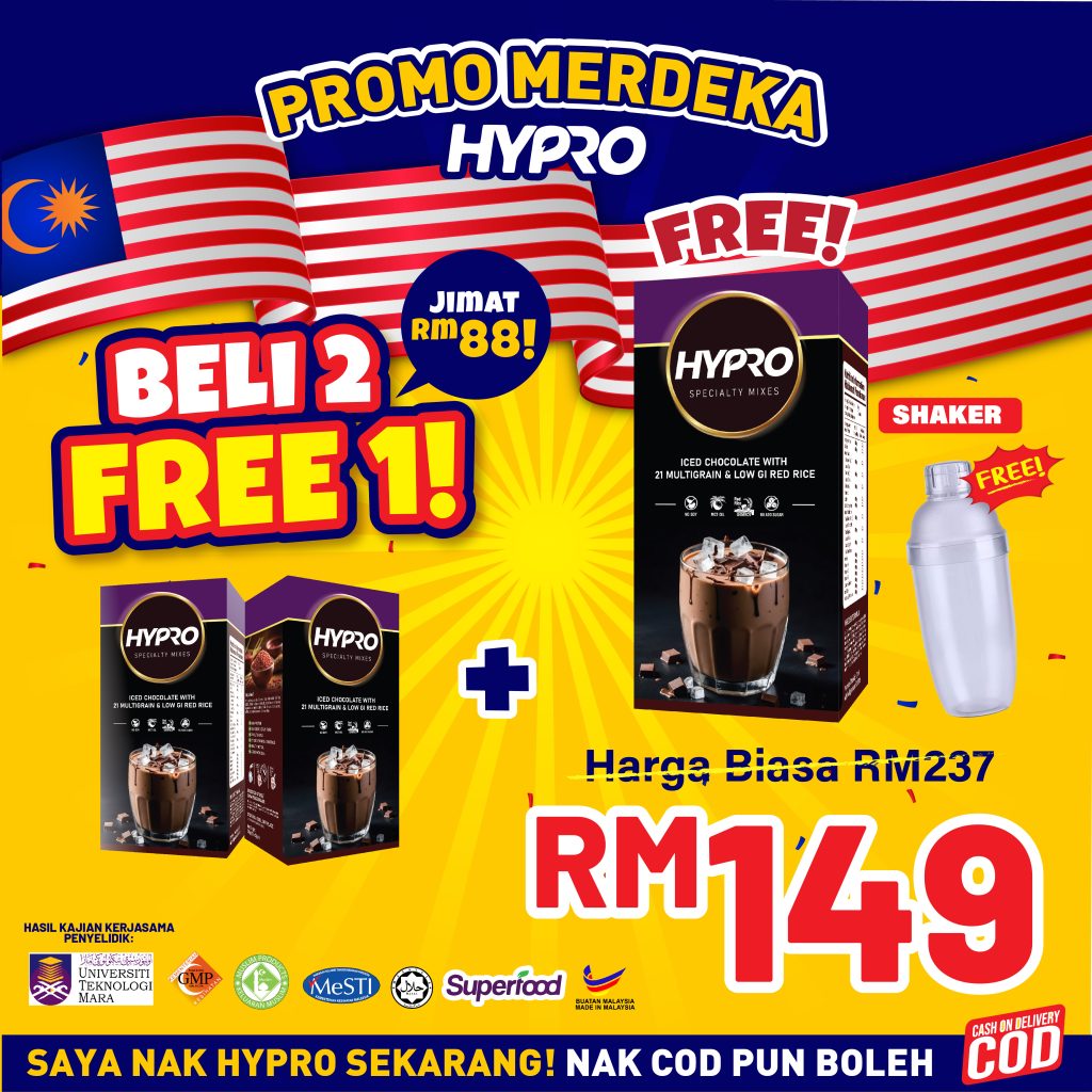 Sebab itu, kami bagi jaminan. Supaya takda siapa pun rugi dalam mencuba produk HYPRO. Cubalah produk ni sekarang. Sekiranya… selepas dah amalkan selama 3 bulan. Kalau tak suka dengan kesan. Rasa tak Sedap. Tak suka kotak. Tak suka bau. Tak suka texture. Tak suka dengan apa jua sebab. Pulangkan balik.